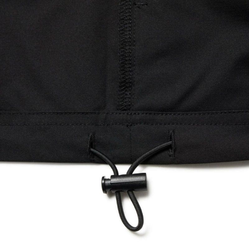 両脇にジップポケット、裾にドローコード付き。