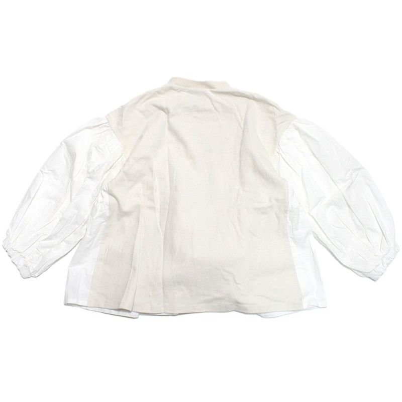 洗いざらしたような質感が特徴のシャツ生地と肉厚のカットソーを組み合わせた切替デザイン。