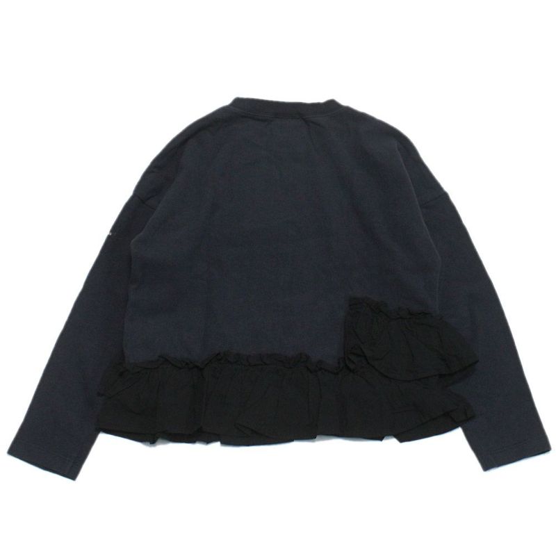 裾部分には、前後で非対称のデザインのフリルをドッキング。