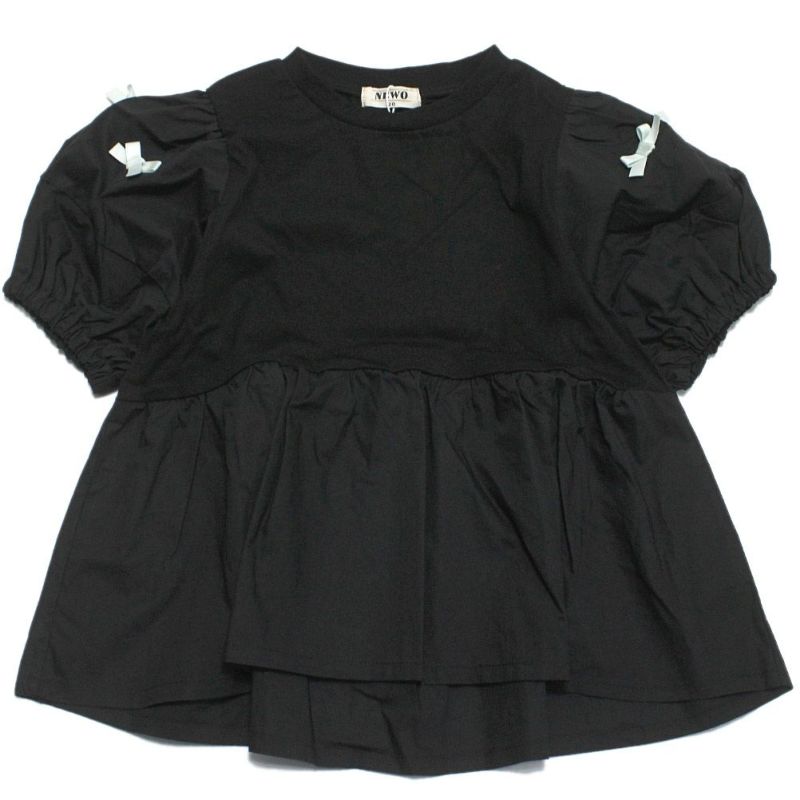 5. [ニードルワークス] 【NeWo】リボンパフスリーブTシャツ ブラック