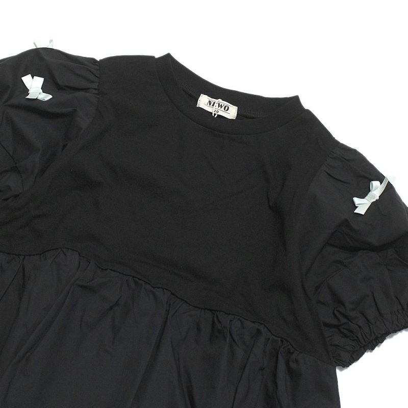 6. [ニードルワークス] 【NeWo】リボンパフスリーブTシャツ ブラック