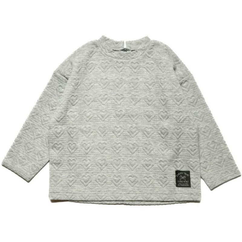 リボンとハート、2柄のニットキルトのプルオーバー。