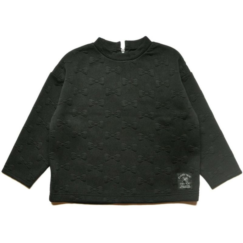 リボンとハート、2柄のニットキルトのプルオーバー。