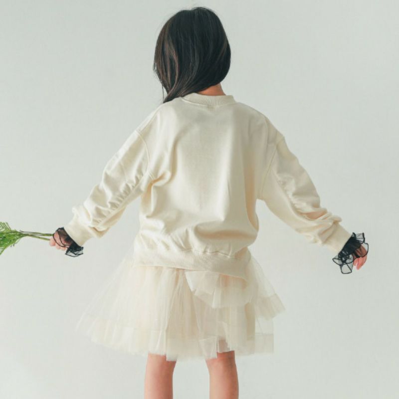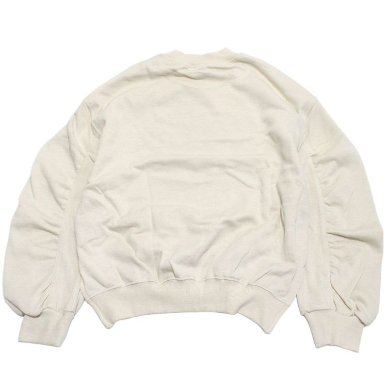 お袖にギャザーを入れた丸いシルエットのトレーナー。