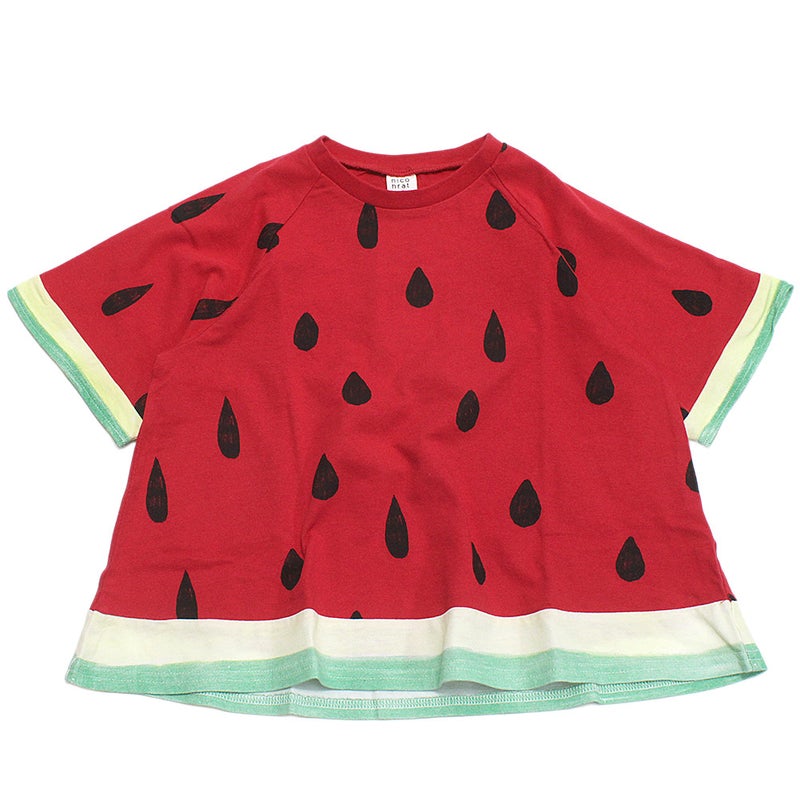やや裾広がりなデザインとラグランスリーブでリアルにスイカを表現。