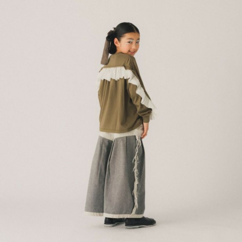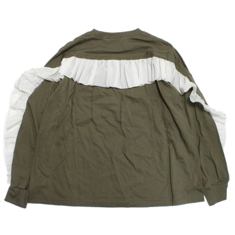 立体感のある裁ち切りフリルが存在感抜群の布帛とカットソーのコンビトップスです。