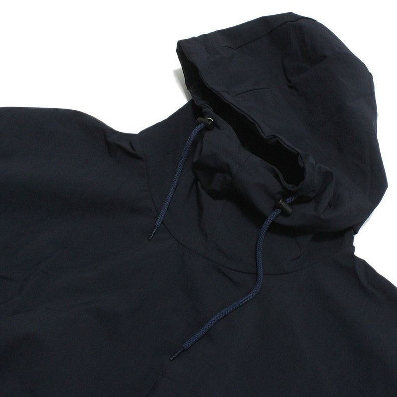 首に溜まるような大き目のフードが特徴。