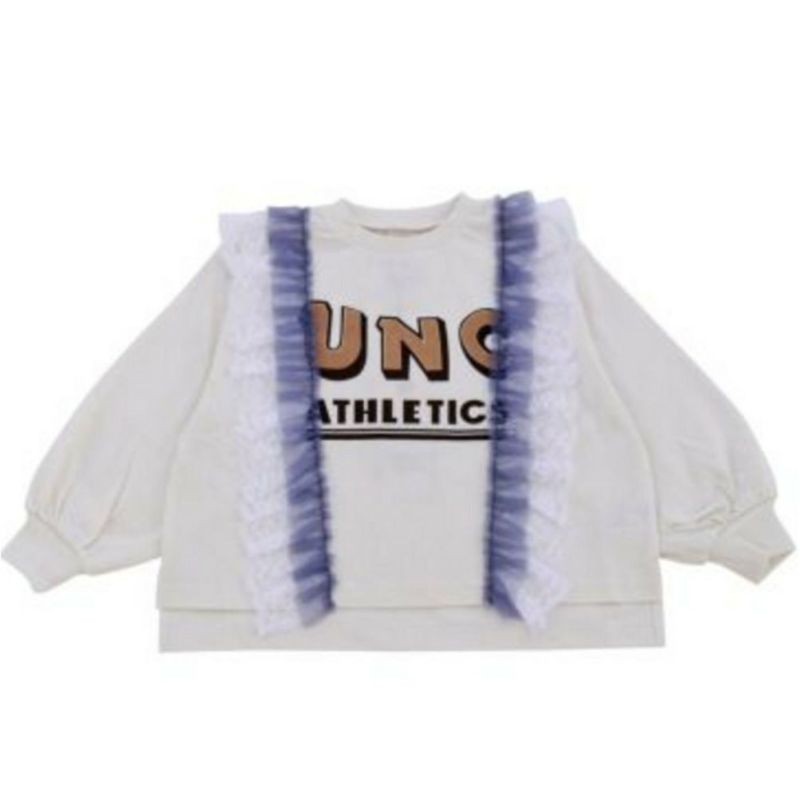 カジュアルなロゴTにチュールレースをあしらったMIXデザイン。