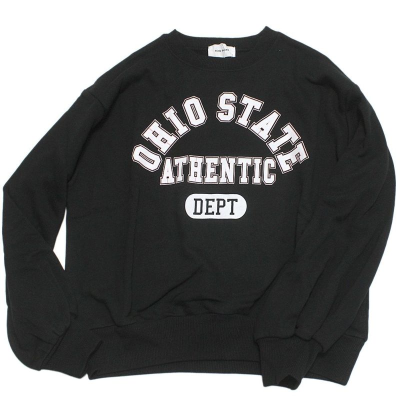 カレッジプリントが目を惹くクルーネックスウェット