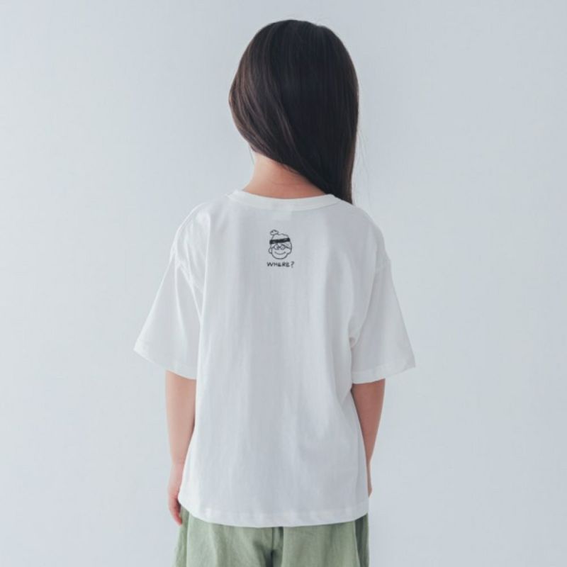 バックネックの少年のプリントがアクセントになっています。