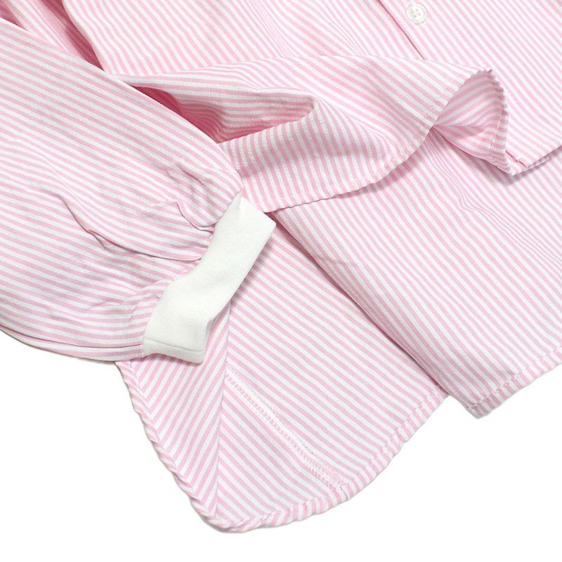 斜めストレッチが効いていて、シャリ感のあるサッカーストライプ生地。