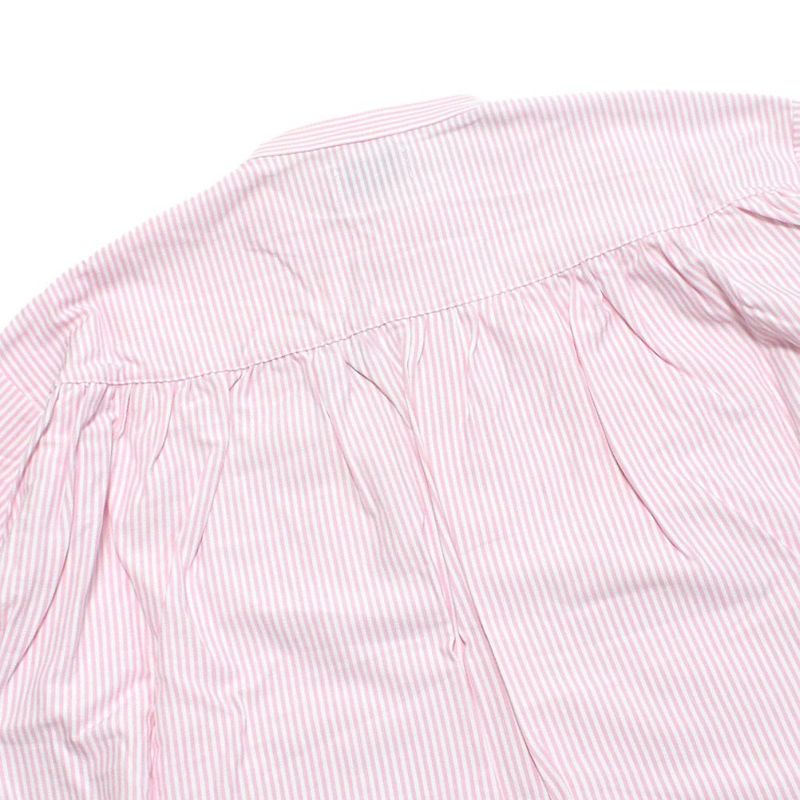ふんわりしたフレアシルエットのストライプシャツ。