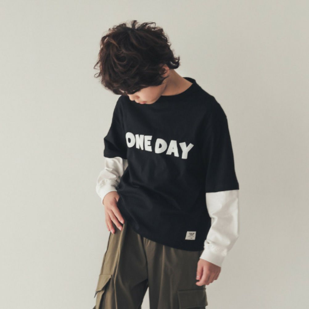 [ジーンズベー] ONE DAY レイヤード風ロングTシャツ ブラック(BK)