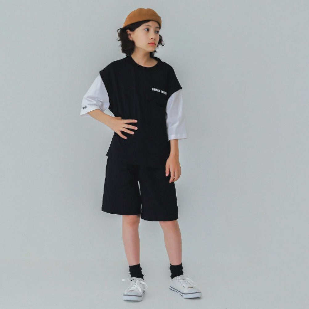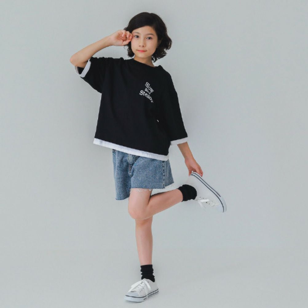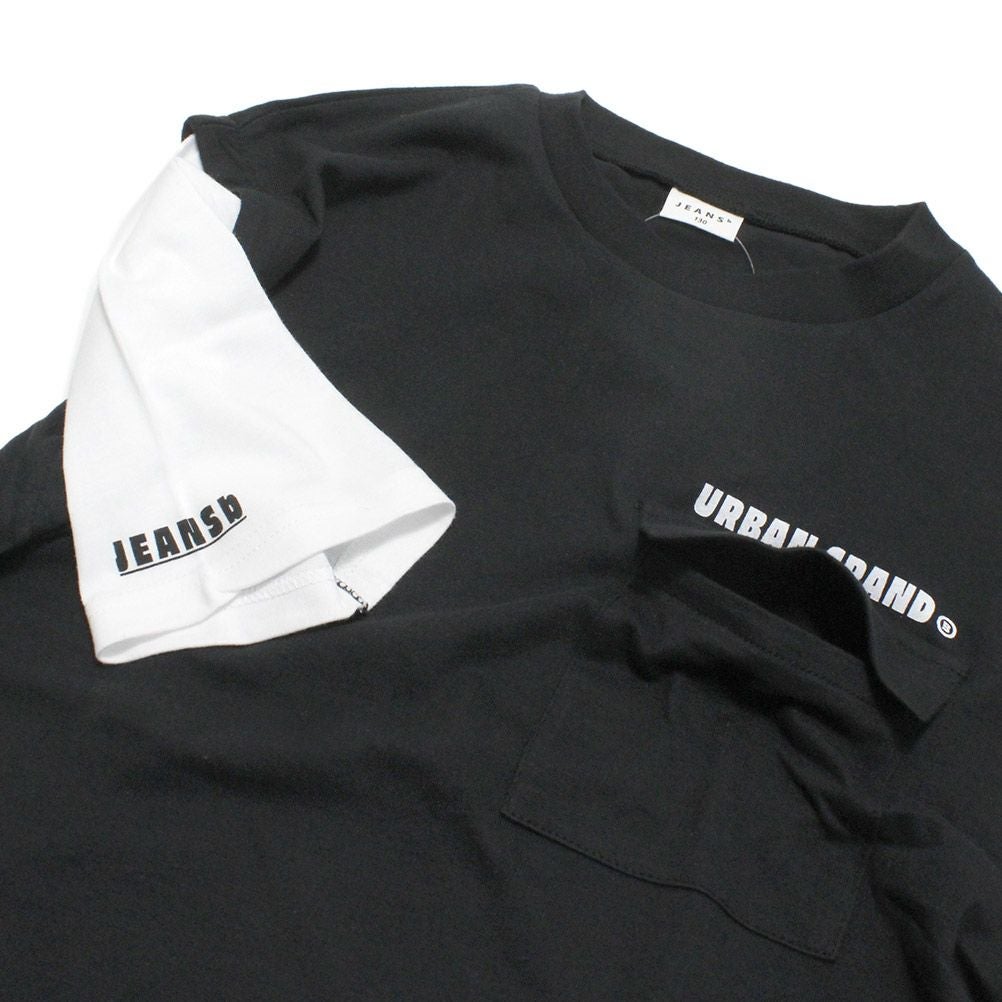 [ジーンズベー] レイヤード風Tシャツ ブラック(BK)