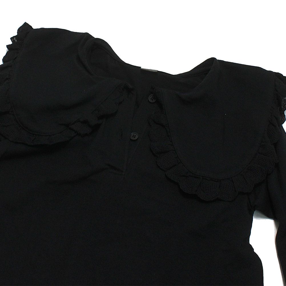 [ピードットプルミエ] レーストリムフリル衿カットソートップス ブラック(BK)
