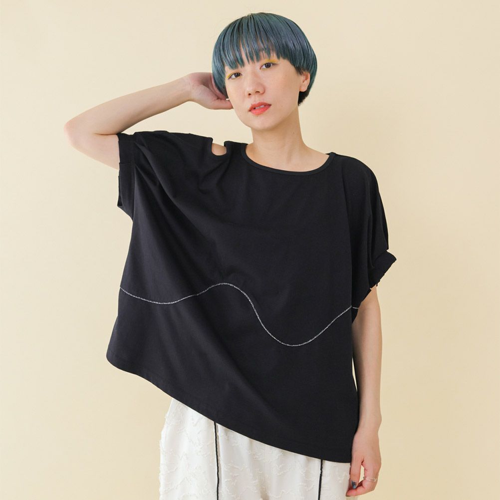 [ユニカ] カットアウトタックスリーブTシャツ ブラック(4)