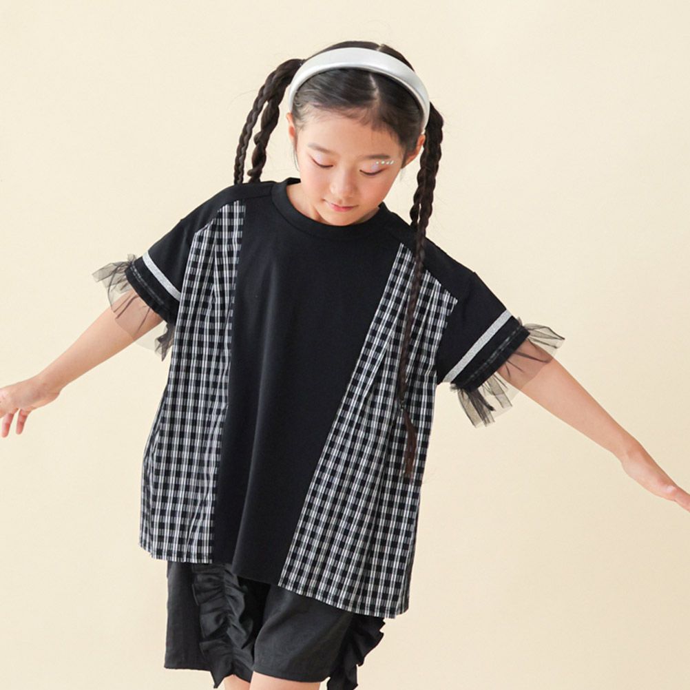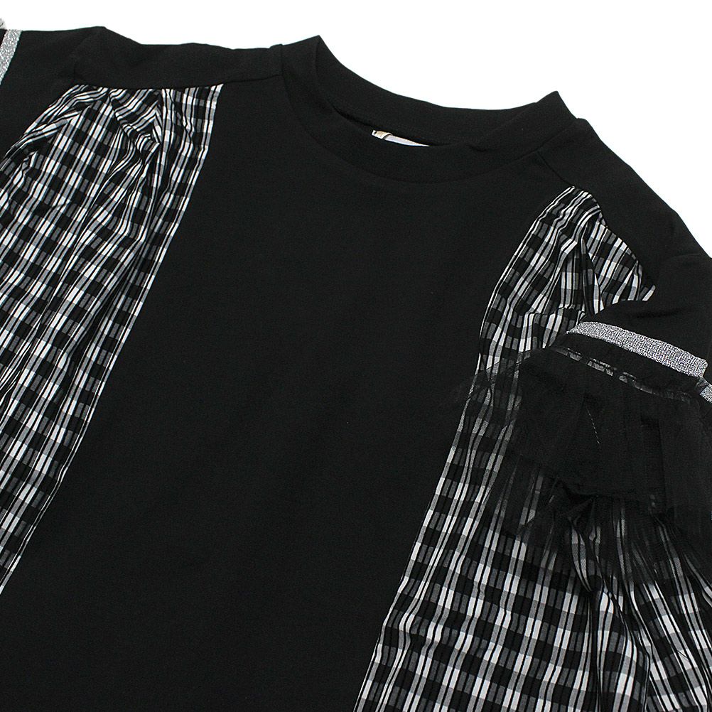 [ユニカ] サイドプリーツチェックTシャツ ブラック(4)