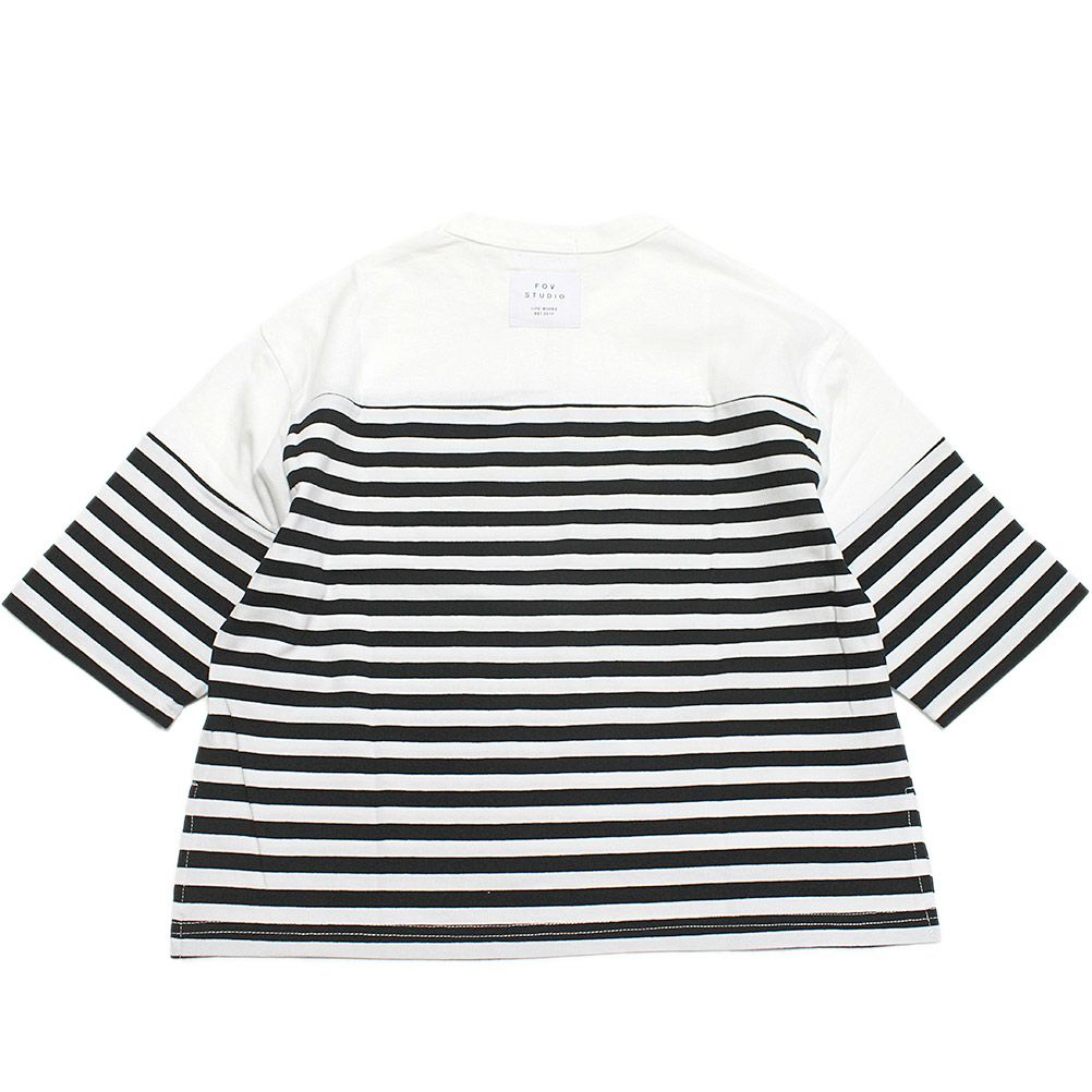 [フォブ] ボーダー切り替えTシャツ(7分袖) ブラック(BK)