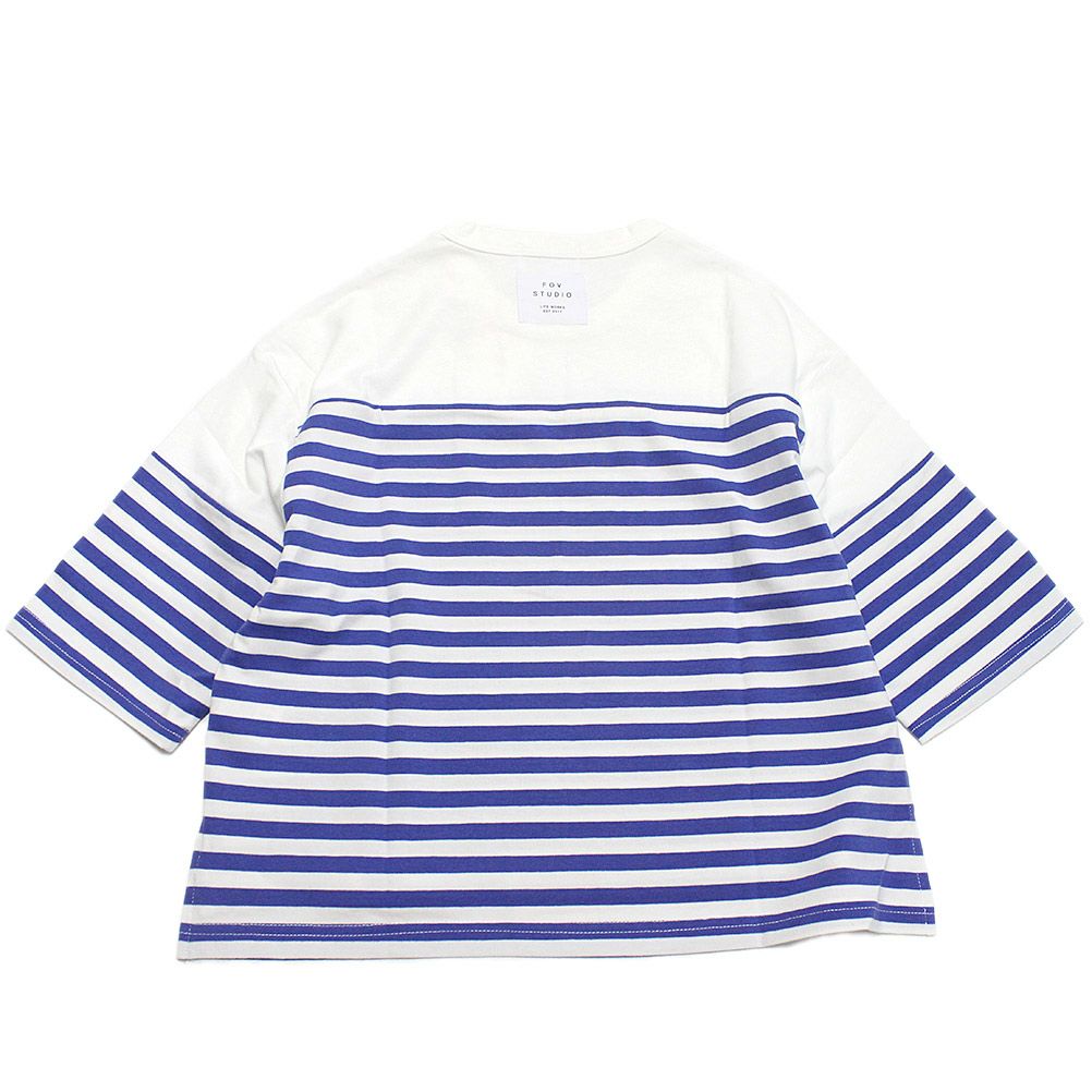 [フォブ] ボーダー切り替えTシャツ(7分袖) ブルー(BL)