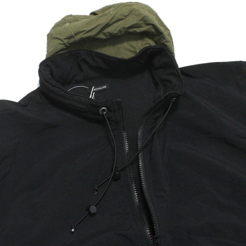 再生ナイロンを一部に使用したクレイジー切替パーカー。