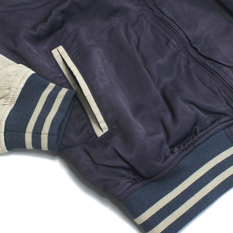 生地はスカジャン特有の光沢感を抑えたボーリングツイル素材を使用。