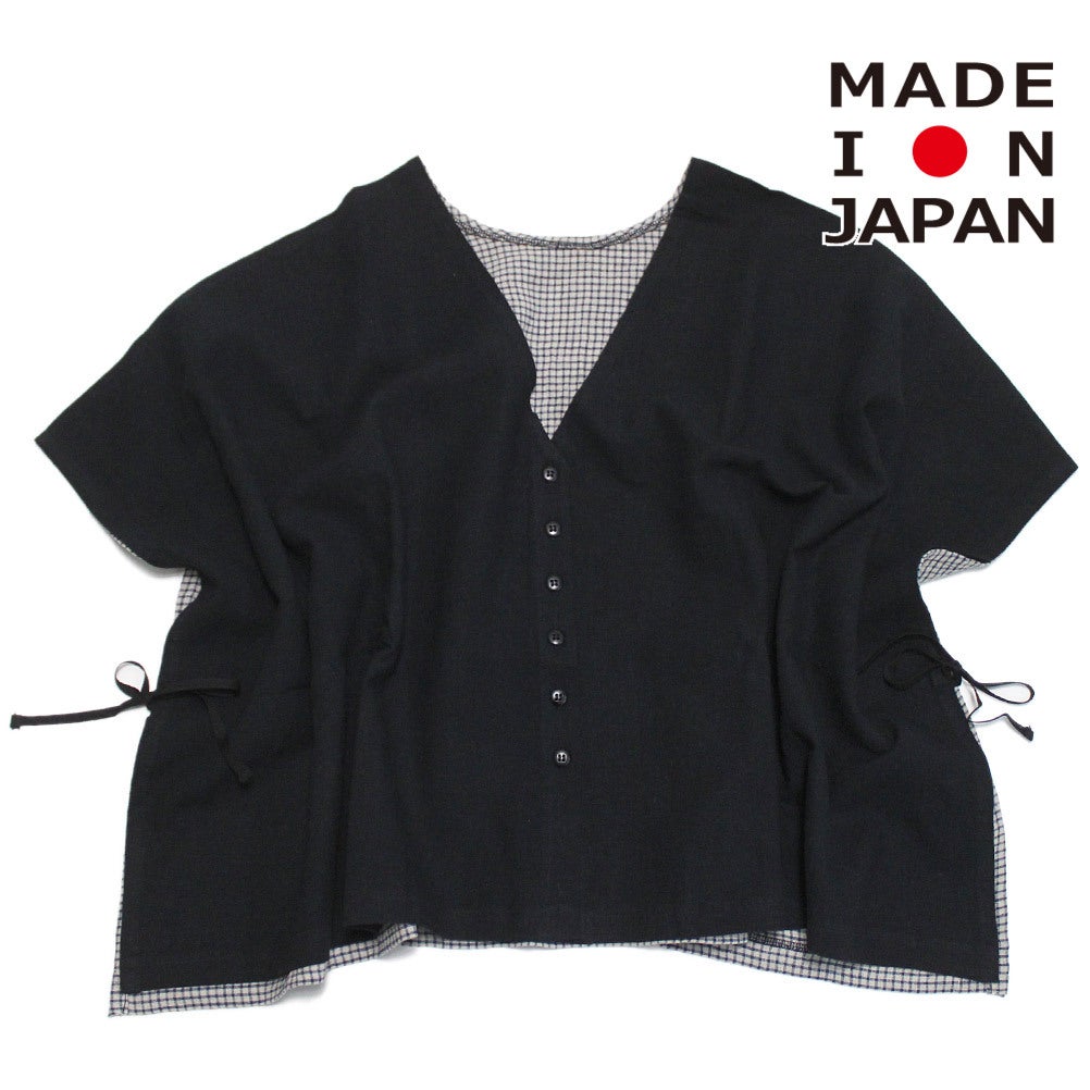 [ミチリコ] Linen ポンチョ ブラック