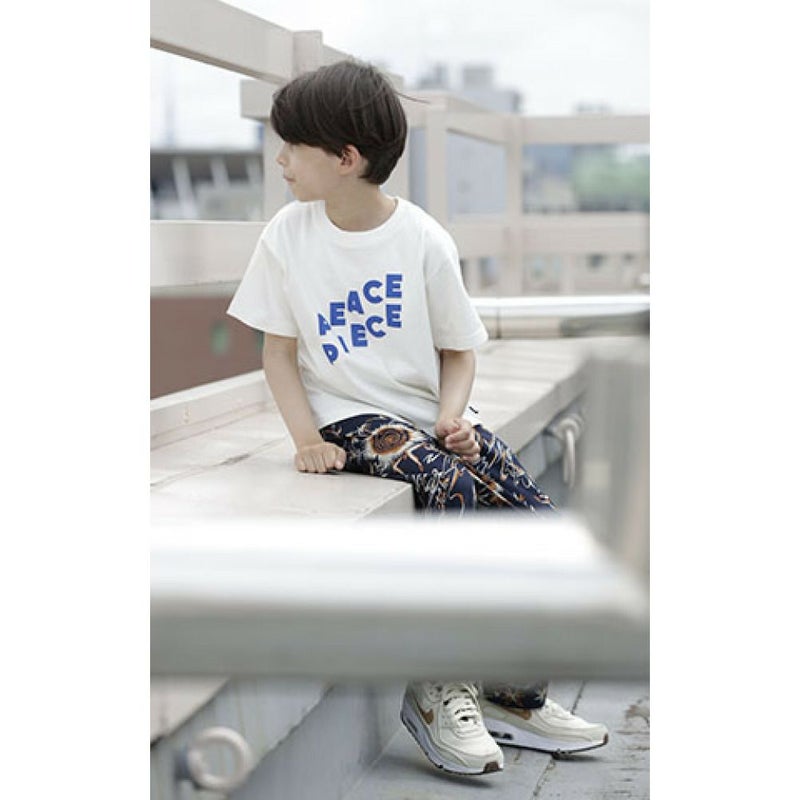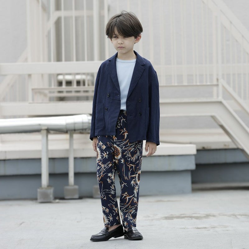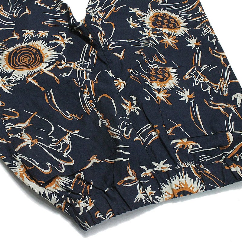 コットン100%のプリント生地を使用したイージーパンツ。