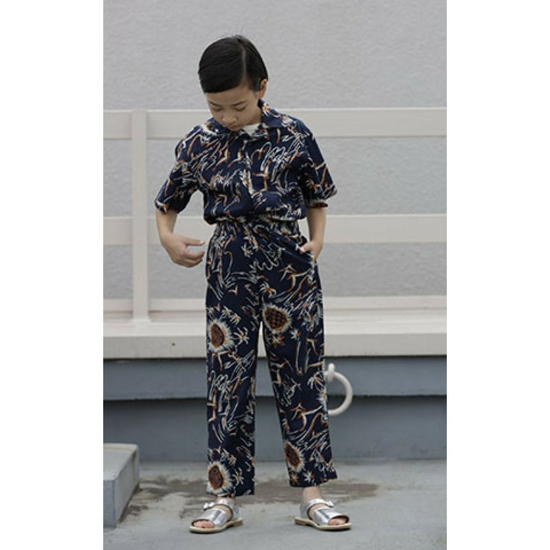 ヤシの木などの手書きモチーフで大人も着やすいデザイン。