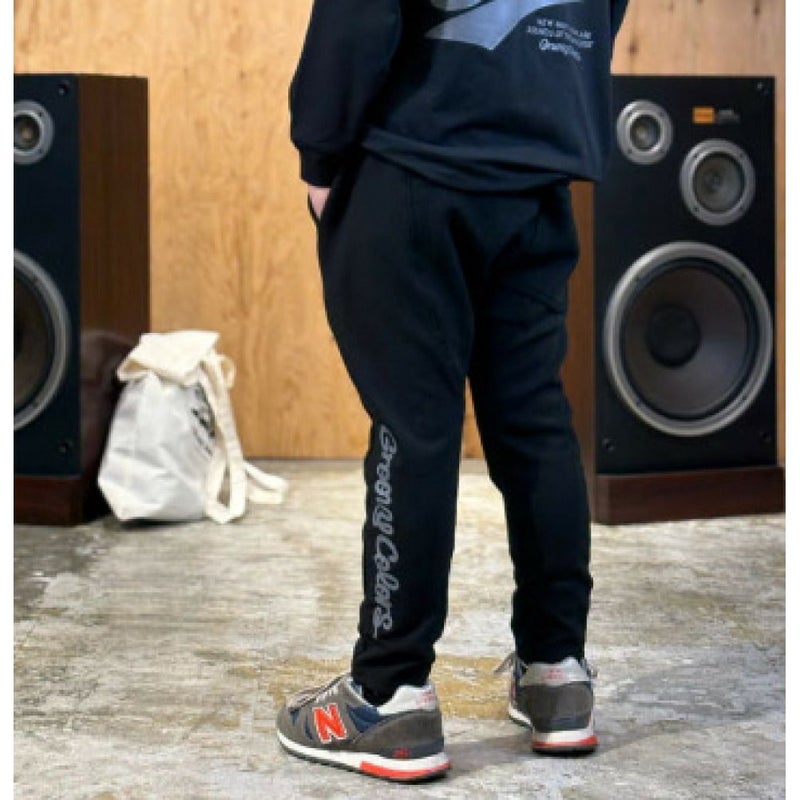 バックの切替による特徴的なシルエットのスウェットパンツ。