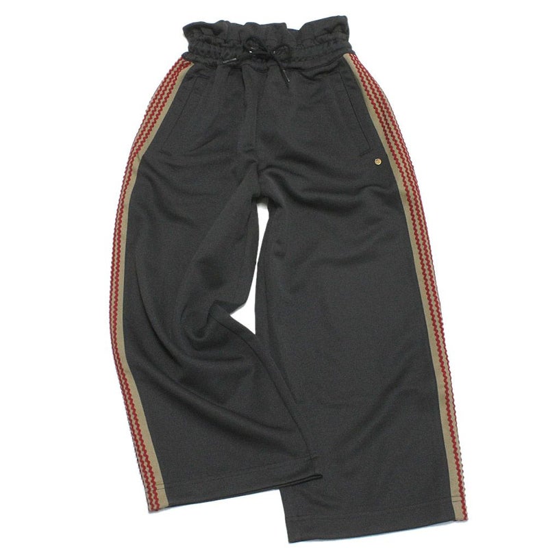腰で履くとシルエットに丸みが生まれる変形トラックパンツ。