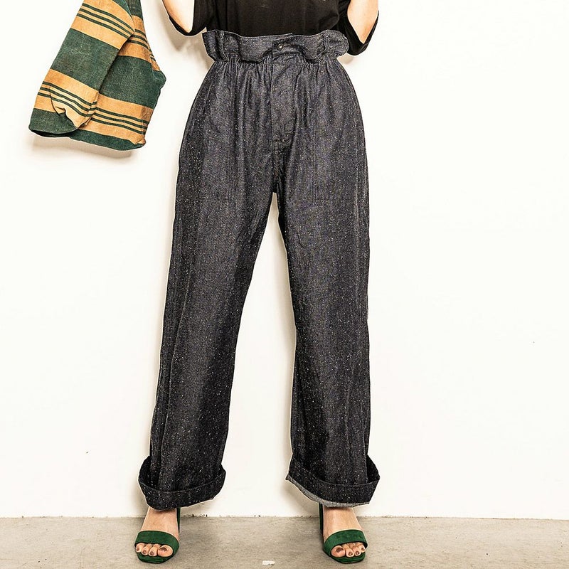 ウエストが大きめのUS NAVYのデニムトラウザーのディティールを再現。