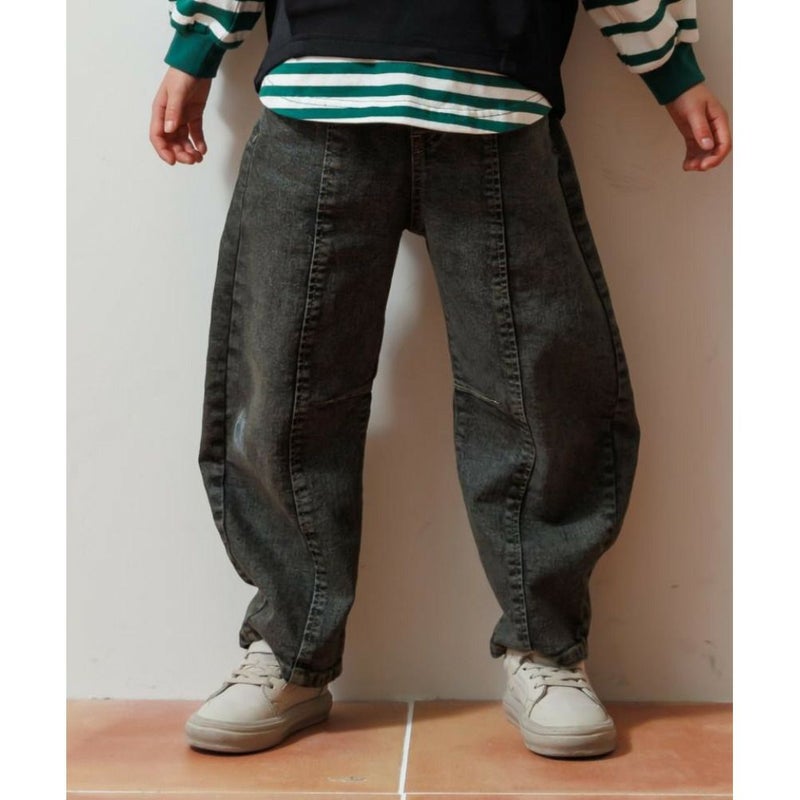 [メイクユアデイ] カーブデニムパンツ ブラック(BK)