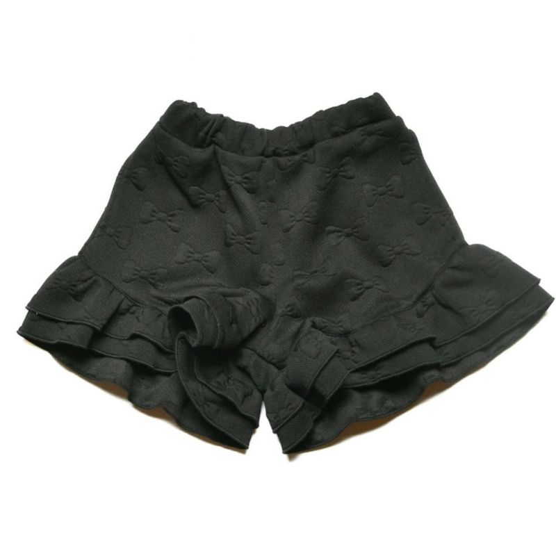 リボンとハート、2柄のニットキルトのフリルパンツ。