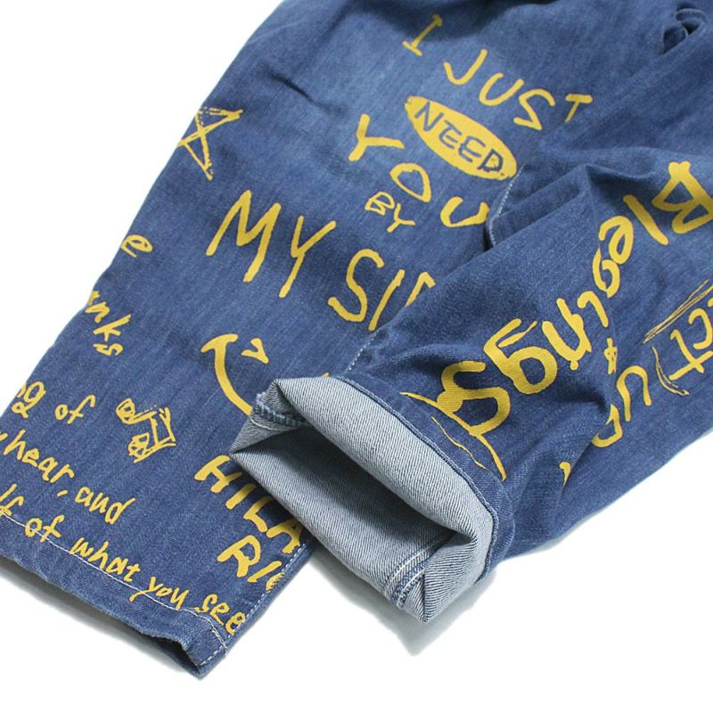 4. [オフィシャルチーム] カットデニムラクガキスマイルタックワイドパンツ ブルー