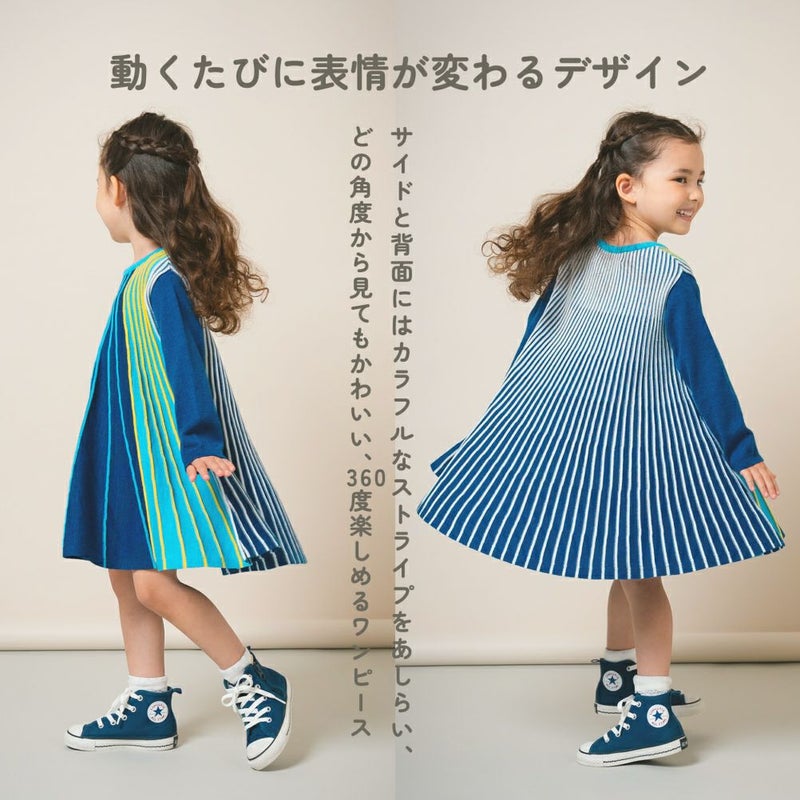 動くたびに表情が変わるカラフルなストライプが印象的。