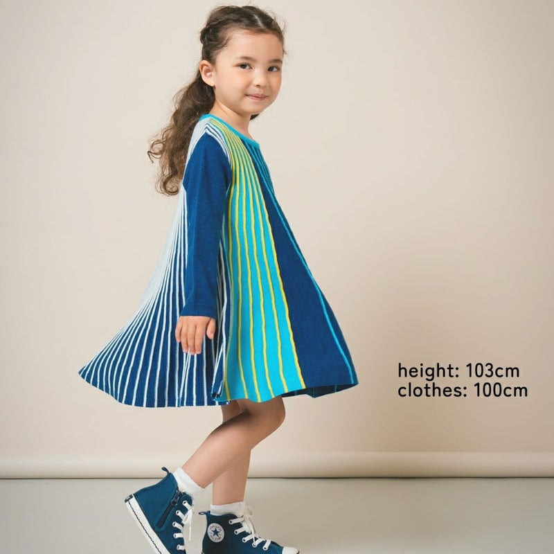 5. [アミアミ] マルチカラーストライプAラインワンピース ネイビー(94)