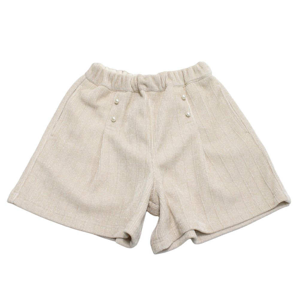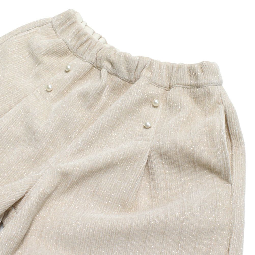 パールがアクセントに効いたキュロットパンツ。