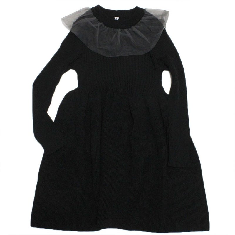 [マルーク] リブニットチュールフリルワンピース クロ系(04)