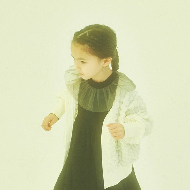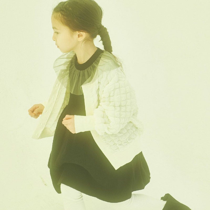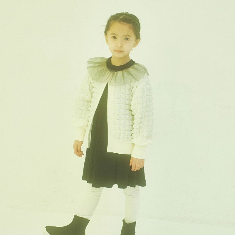 首元にチュールをあしらいガーリーさをプラス。