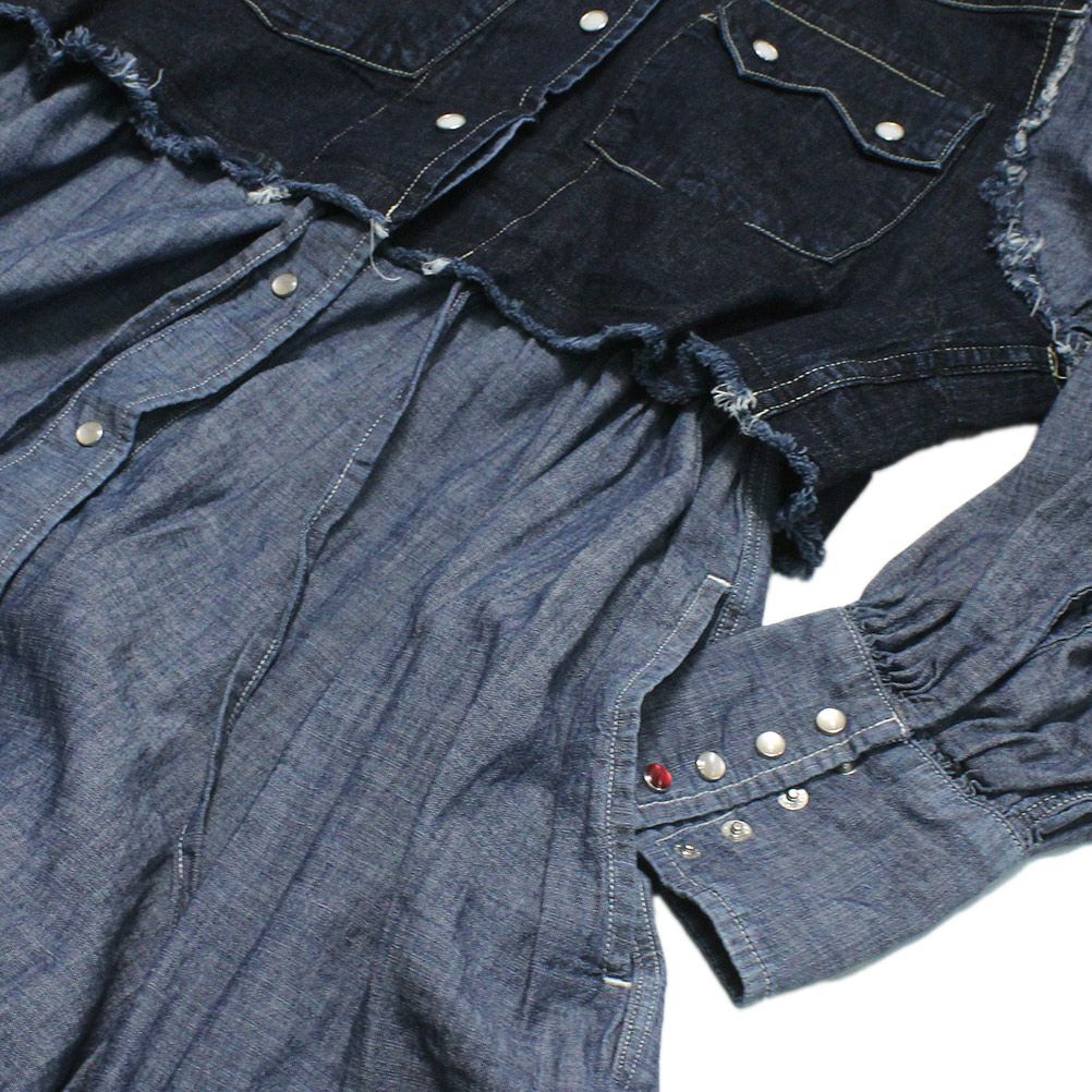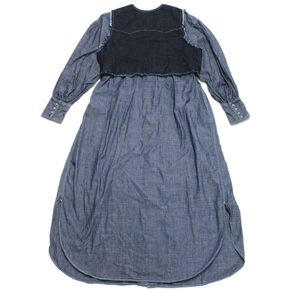 デニムのウエスタンシャツとインディゴダンガリーのウエスタンディティールのワンピースをドッキング。