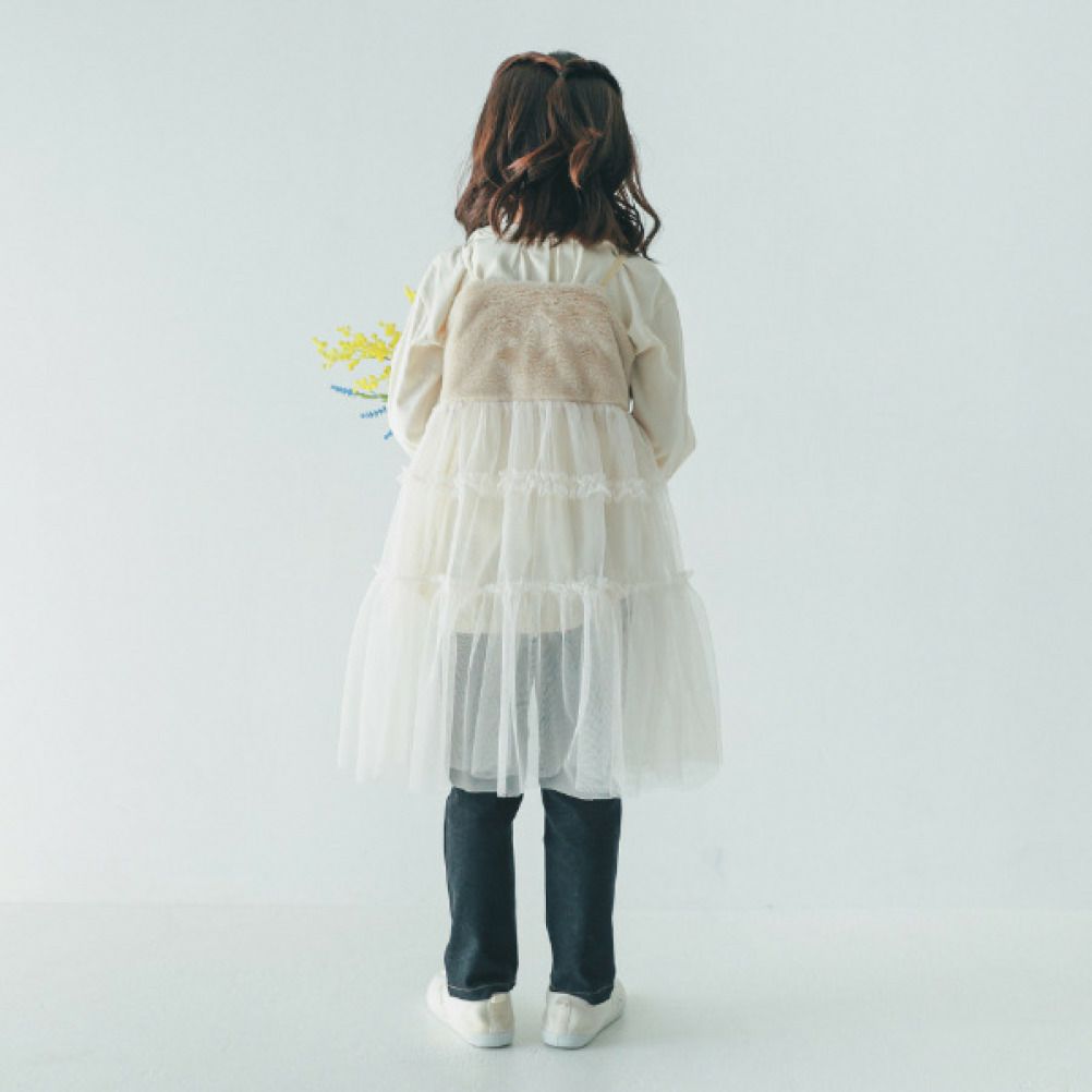コーディネートの幅が広がる透け感のあるチュールワンピ。