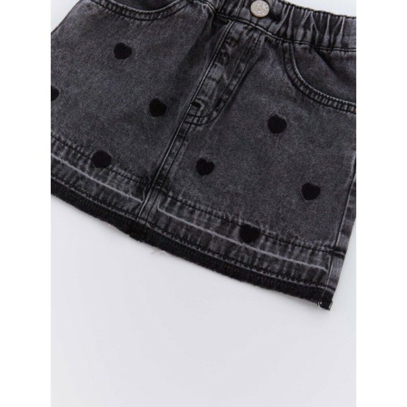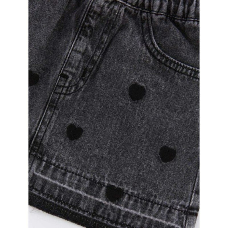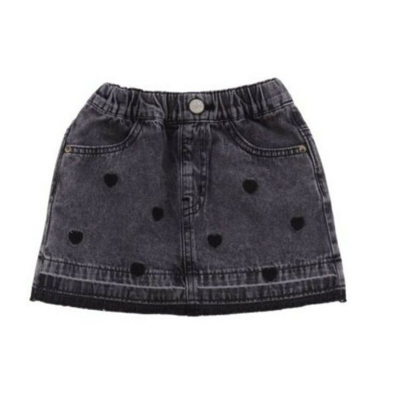 ハートの刺繍がキャッチーなデニムミニスカート。