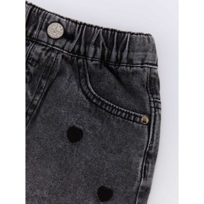 [オーシャン&グラウンド] ハート刺繍デニムミニスカート ブラック(BK)