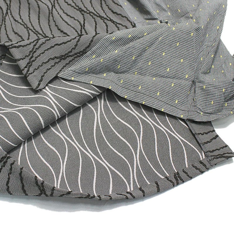 様々な模様の生地を組み合わせることで個性的な一着に仕上げました。