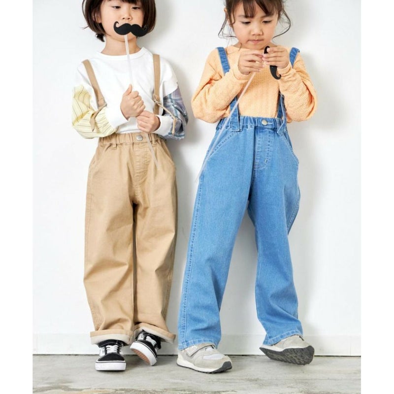 取り外し可能なサスペンダーが付いたフル丈パンツ。