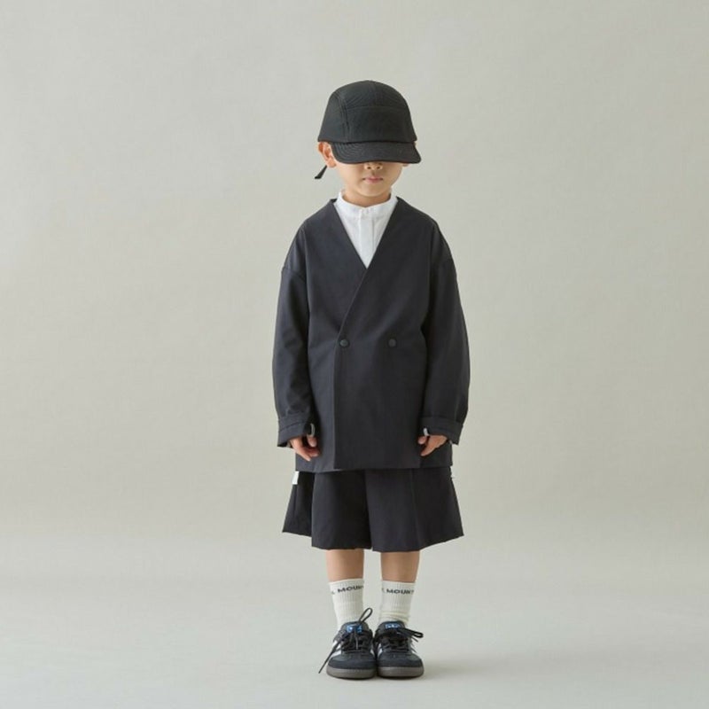 MOUN TEN.定番のダブルのノーカラージャケット。