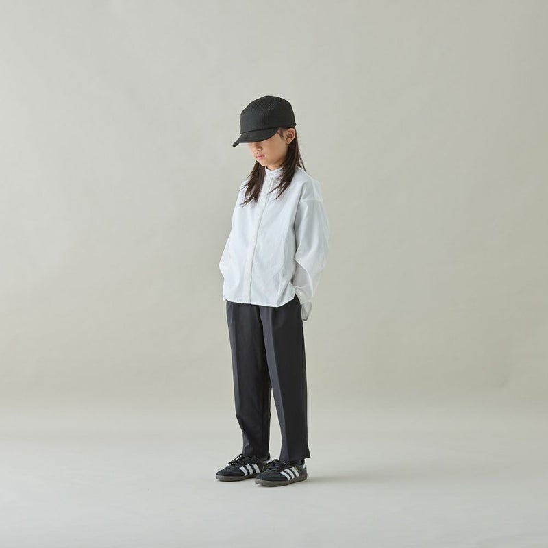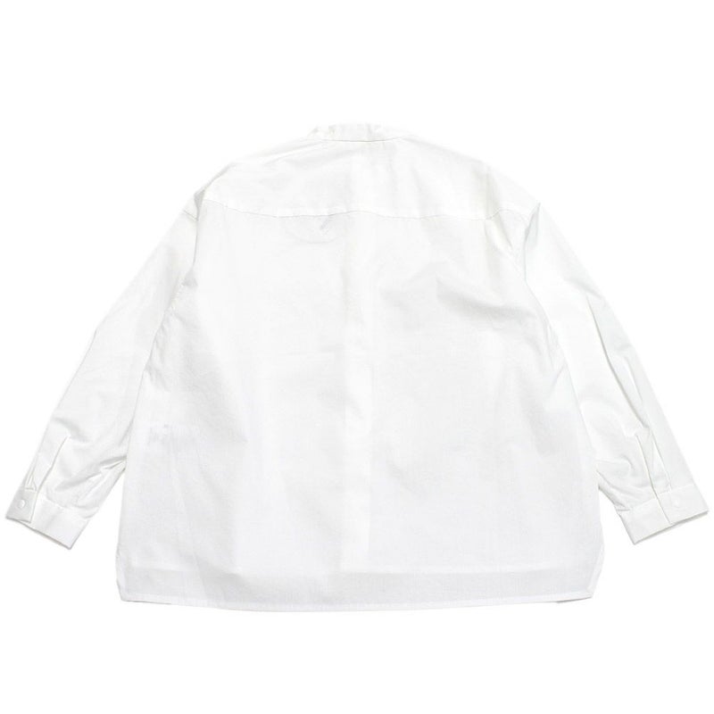 比翼仕立てのバンドカラーシャツ。