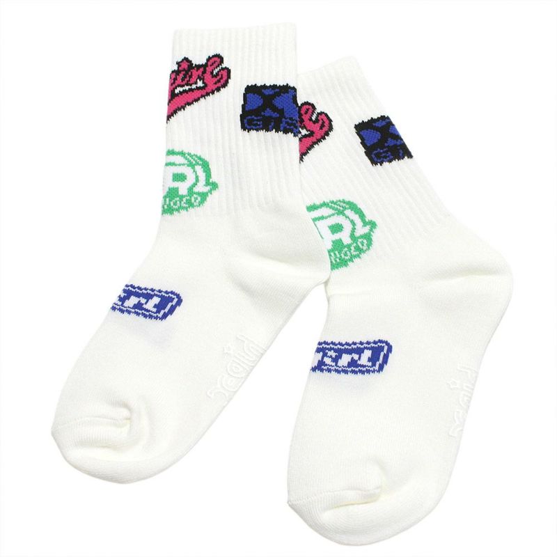 [エックスガールステージズ] MIXロゴリブクルーソックス オフホワイト(03)