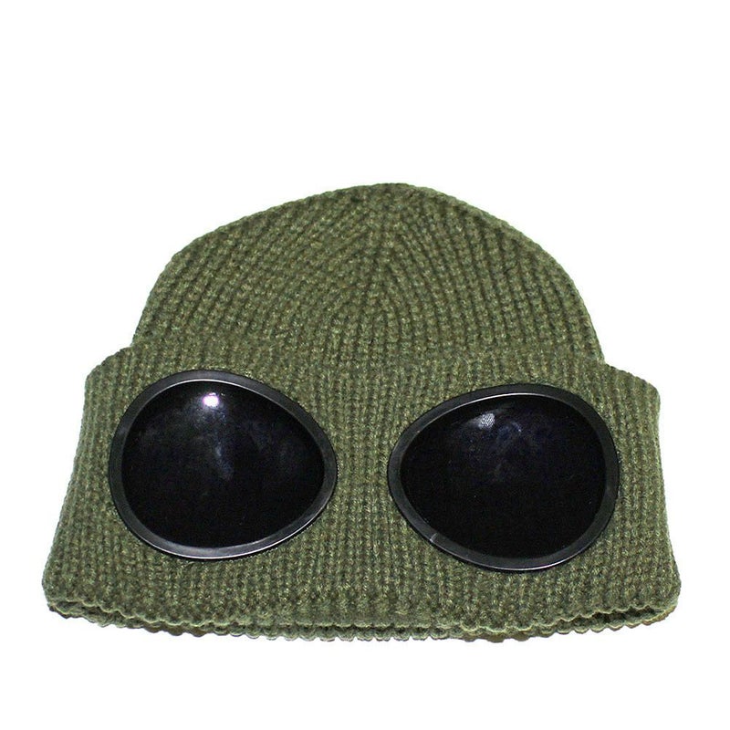 カフを下すとゴーグルになるユニークなニット帽。