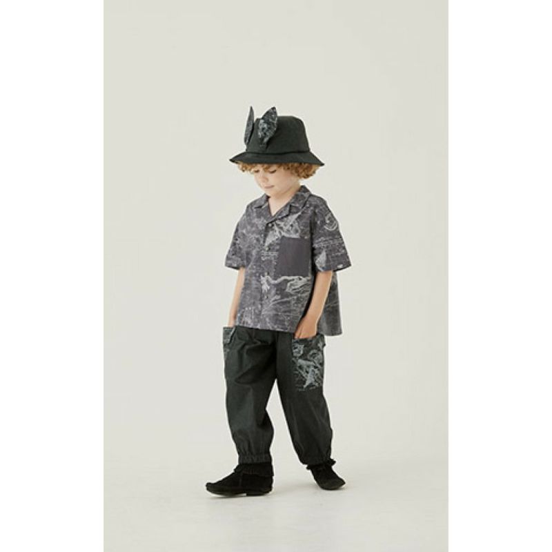 今シーズンのテーマ”幻のフクロウ座”の描かれた古星図をコラージュしたアイテム。